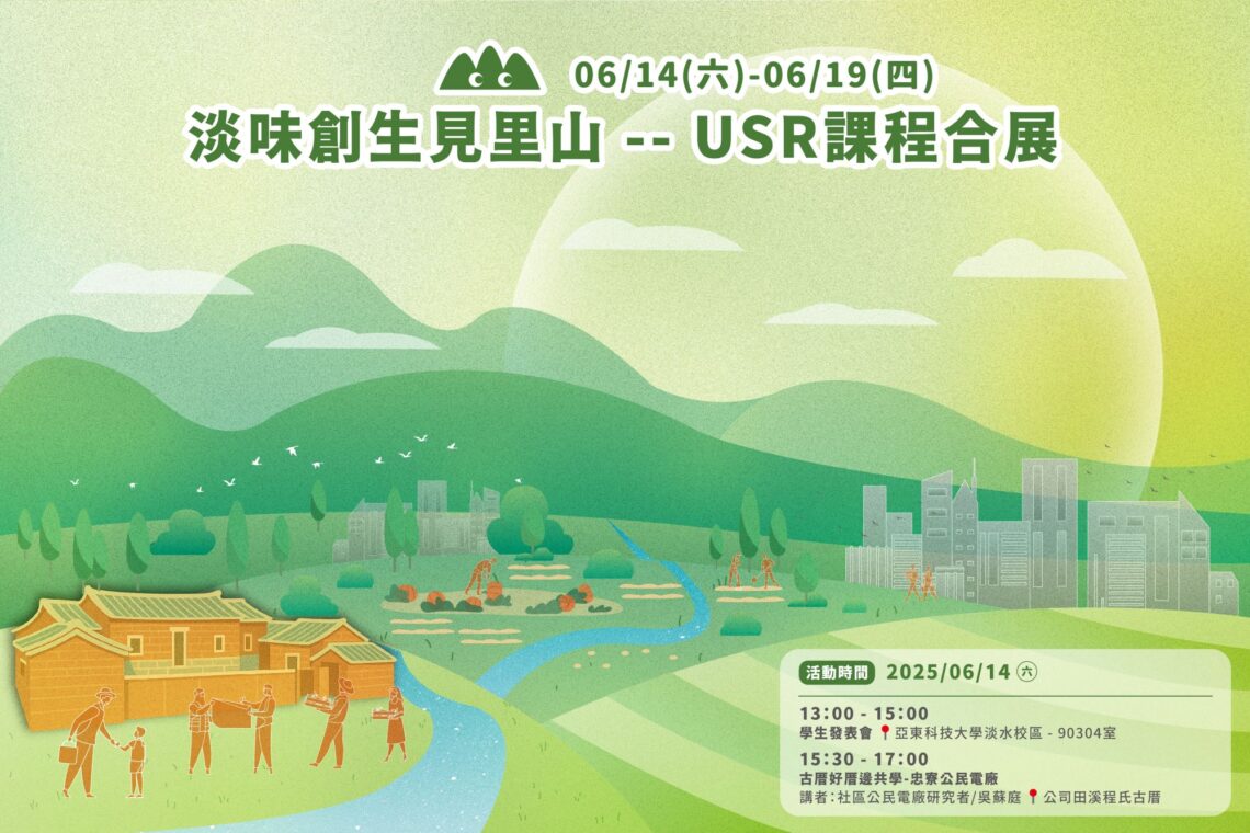 活動名稱:2025課程合展|淡味創生見里山日期時間:2025年06月授課教師:淡江大學USR淡水好生活計畫主持人黃瑞茂教授課程名稱: 淡江大學建築學系大四建築設計合作/議題場域:淡江大學/大學城SDG Targets:4.7、11.7、15.4 透過大學與周邊社區的協商,共同推動環境改造。 2017年守謙國際會議中心完工,隨之展開驚聲路的改造。之後一系列校園空間改造工作陸續展開。2020年以「學習x生活」回應教育部補助大學宿舍改造公共空間計畫,終獲得補助。是以新東「村」啟動校園規劃的開...