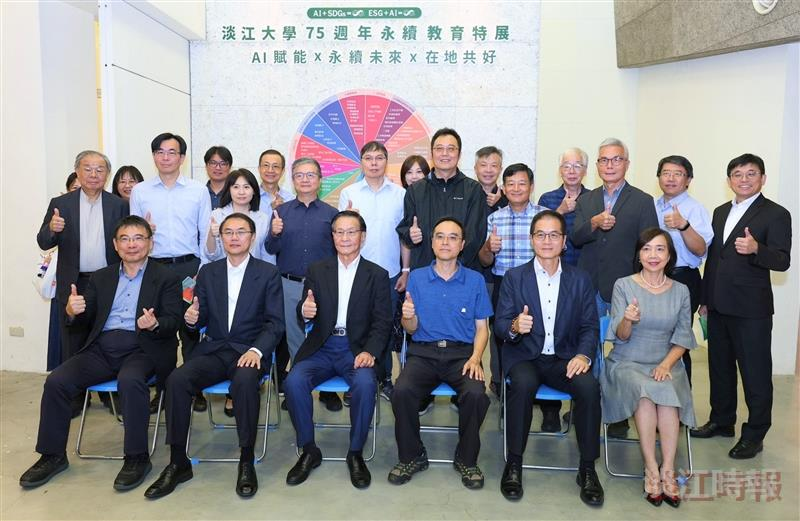 【張瑜倫淡水校園報導】永續發展與社會創新中心、大學社會責任實踐計畫辦公室10月21至23日,在黑天鵝展示廳舉辦「淡江大學75週年永續教育特展」,以「AI賦能×永續未來×在地共好」為主題,透過靜態海報展、戲劇演出、教學對談與學習論壇等多元形式,呈現本校在教育創新、社會參與及環境永續等面向的實踐成果。開幕式於首日中午12時10分舉行,校長葛煥昭、3位副校長、淡水區副區長徐天平,以及多位主管與師生到場參與。