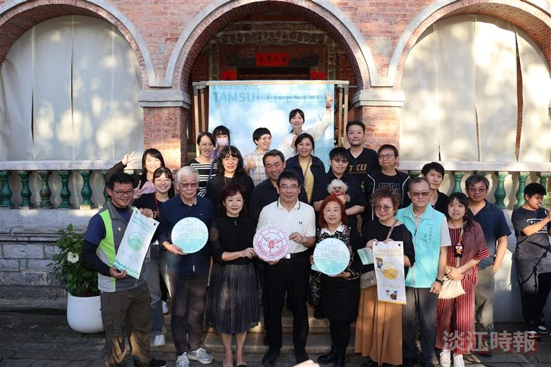 「2025淡水生活節:淡味拾棲蒔」開幕式於11月15日在紅樓廣場舉行,參與者合影。(攝影/李而義)