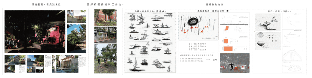 在觀察淡⽔⽼街的過程中,我重新發現了⽣活的縫隙,那些微⼩卻充滿詩意的存在,等待著被重新觀看、被再⼀次想像。這份創作態度深受藤森照信啟發——他以童話形式建築現實,讓夢境透過⼯法與材料語法具體實現,證明了童趣不只是裝飾,⽽是⼀種深刻的建築思維。
