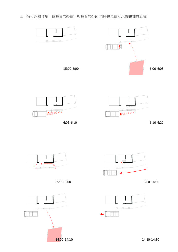 更多細節在過程中被發現:有關於肉鋪、五穀雜糧店等的空間使用。如何將「菜農的兒子」的窺探,成為多數人能注意的事件,用以將清水街市場、中山路早市成為一個敘事的整體,成為設計的主題。
